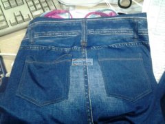 无缝仿牛仔裤平车贴口袋外发如图,有空做的加工厂请联系地址:北苑