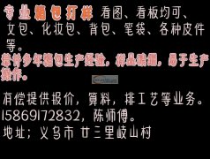 本厂以做十多年的箱包生产经验:常年承接:女包、化妆包、背包、笔袋、箱包等……加工或来样包材料生产。诚信