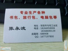 本厂位于东阳千祥马宅工业区,专业书包,旅行包,电脑包,冰包,可以包工包料,专业生产,加工