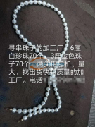 看图,寻手工穿珠加工厂,6厘白珍珠70个,3厘金色珠子70个,两头用包扣,量大,找出货快的,质量好的加工厂,请联系电话。