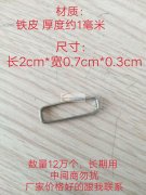 寻直接厂家【配件采购】如图铁皮表带扣,数量12万个,长期返单。尺寸:铁皮厚度约1毫米,长2cm*宽0.7cm*高0.3cm.厂