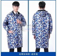 源头厂家直销:迷彩蓝大褂复合加绒迷彩防水记忆布加绒连帽风衣广告围裙