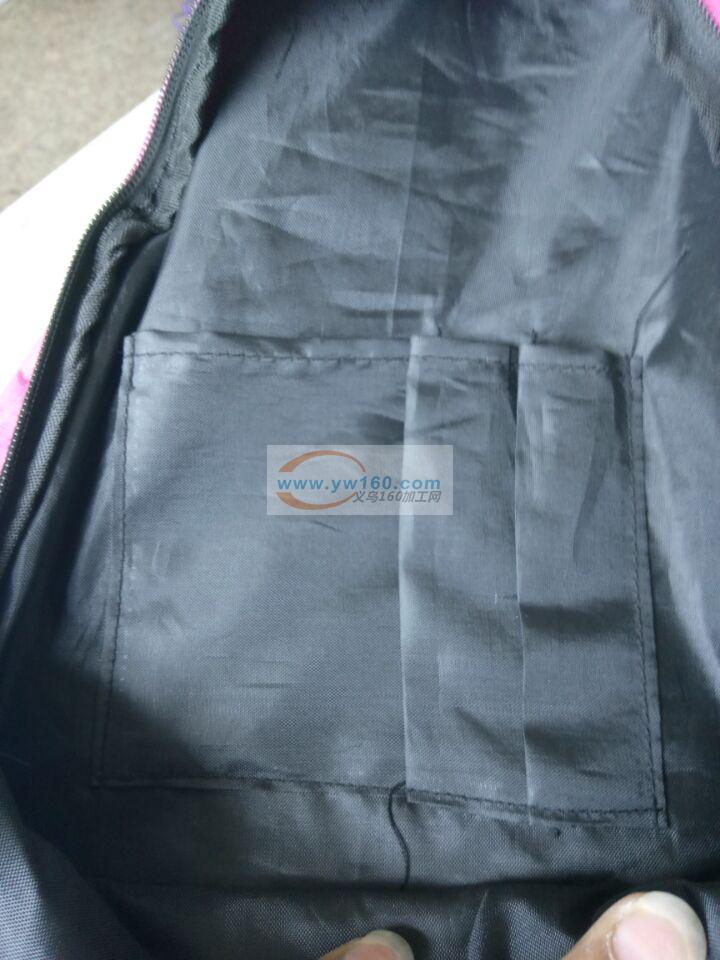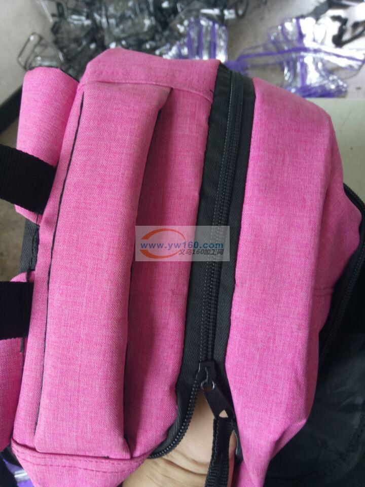 千祥有如图书包后片三明治靠背外发,包一圈钉一圈,里布小袋外发,接手提踩拉链接围底外发,踩拉链反踩暗线不用折,地址:东阳千祥,有时间做的联系。
