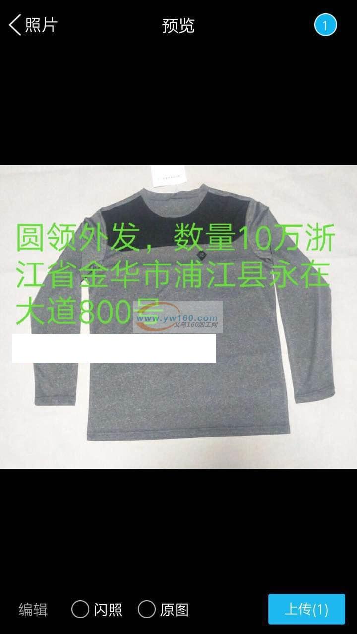 附图,浦江有10万件衣服外发加工,圆领的,质量有保障的加工厂联系我,地址:金华浦江县永在大道*号。