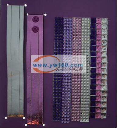 *4根PU皮表面带闪光粉含自粘魔术扣19.5*2.5CM,颜色:粉色,浅蓝,浅紫,白色。厚1MM.
