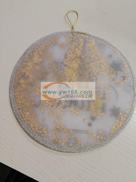 圣诞圆纸包车缝加工,每个纸包内放四克亮片,纸包顶部一个金色绳子悬挂,数量二十多万