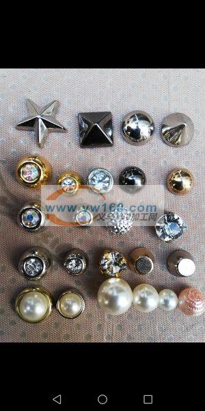 承接钉珠加工:专业花边,袜子,围巾,头饰,帽子,裤子以及各种服装和服装辅料钉圆珠和各种异形带钻珠子等。我们有20多台机器,其中多功能的有10台,质量好、出货快、价格底,欢迎各位老板下单。