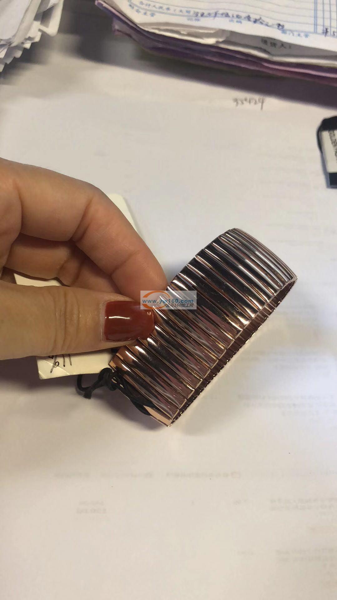 现需寻找如图所示产品,手表链材质,手镯,电镀金色,内径63,5,订单数量800个,