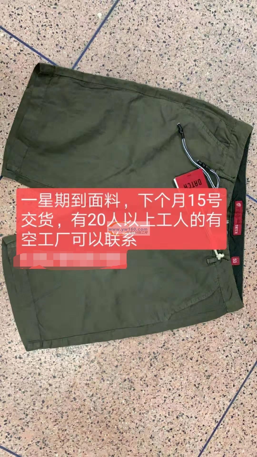 有货外发加工,要求20人以上的服装加工厂,做如图产品,义乌东阳周边的工厂都可以,数量10000条,有空的加工厂与我联系,一星期到面料, 下个月15号交货