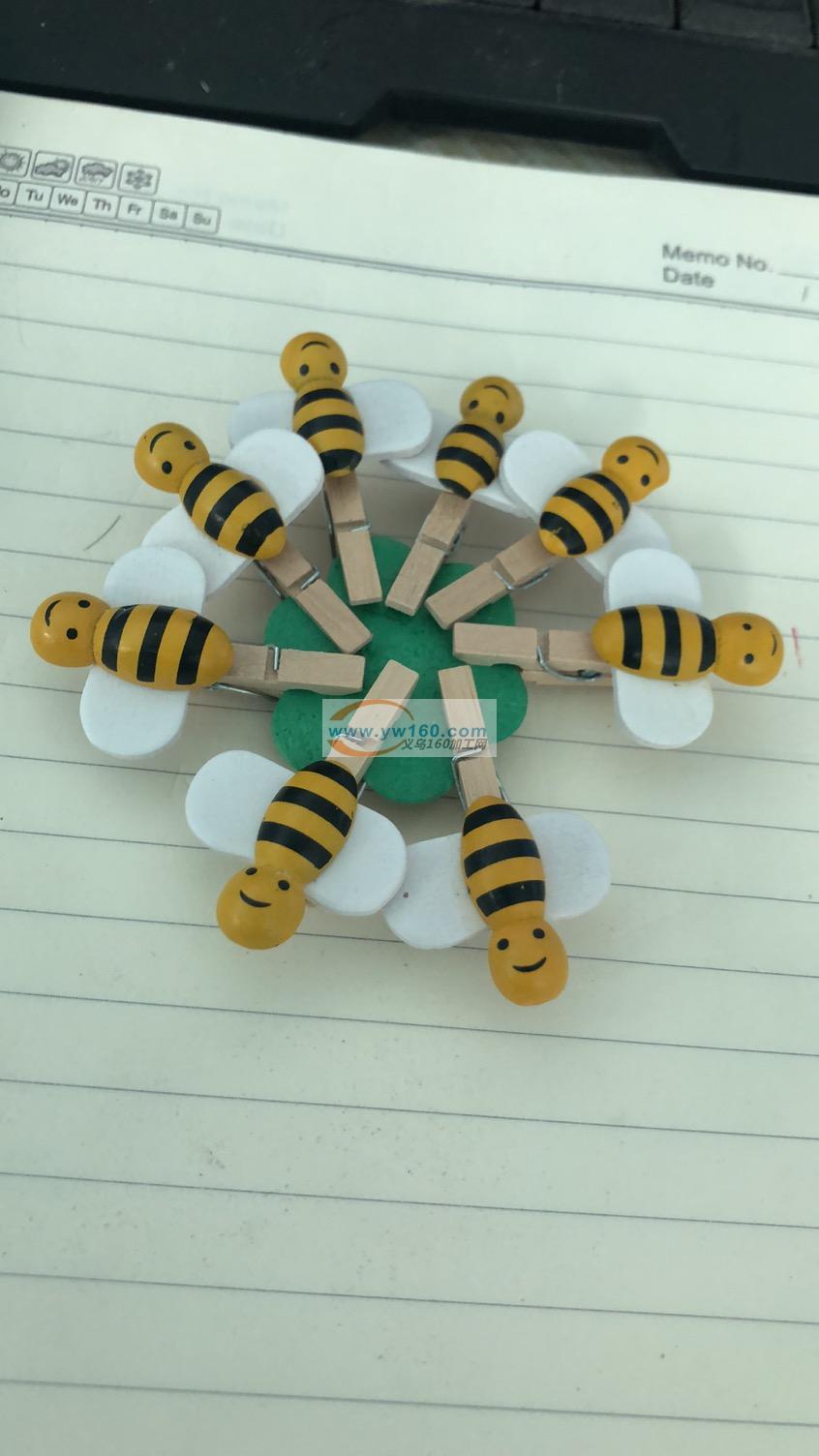 8个蜜蜂 木衣夹, 夹子尺寸 3x0.5cm, 上面蝴蝶尺寸4.3x4cm,首次样单:一千八百套,后续:四万套,有货的请联系陈先生