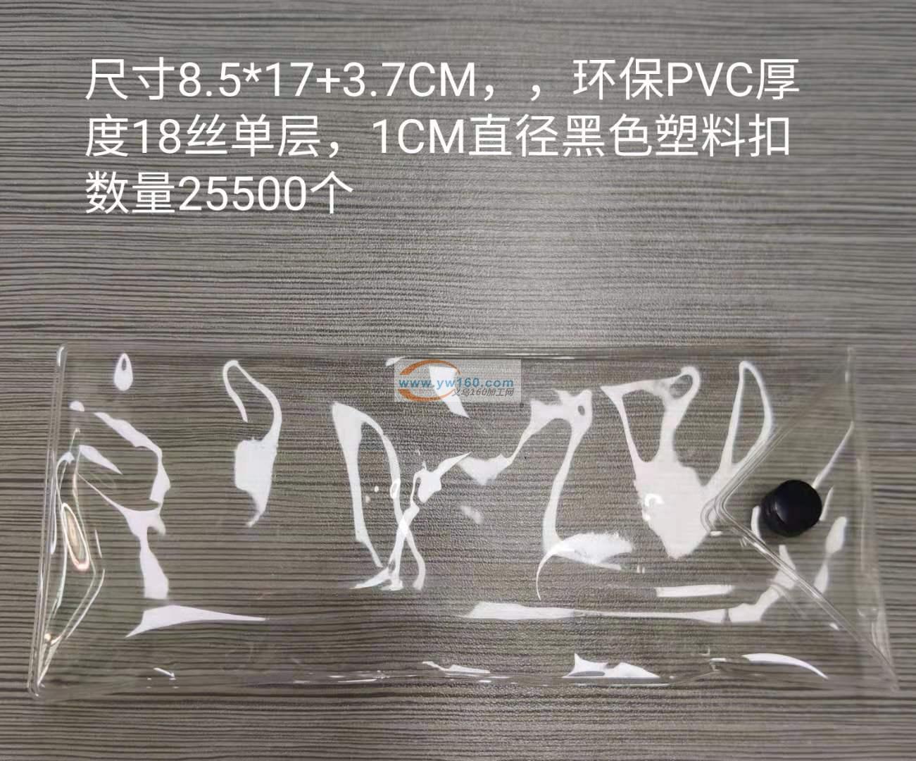 尺寸:8.5*17+3.7cm,厚度18丝(单层),1cm直径的黑色塑料扣,要求全环保料