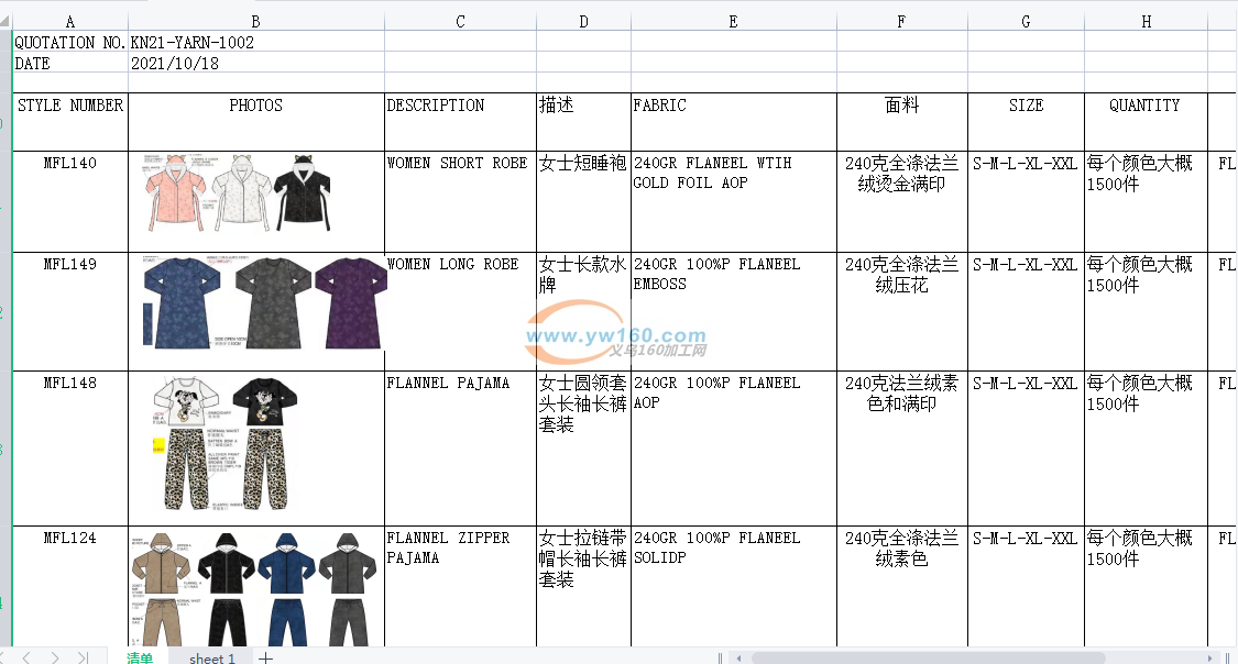 寻义乌能做这几款睡衣的工厂,数量1.35