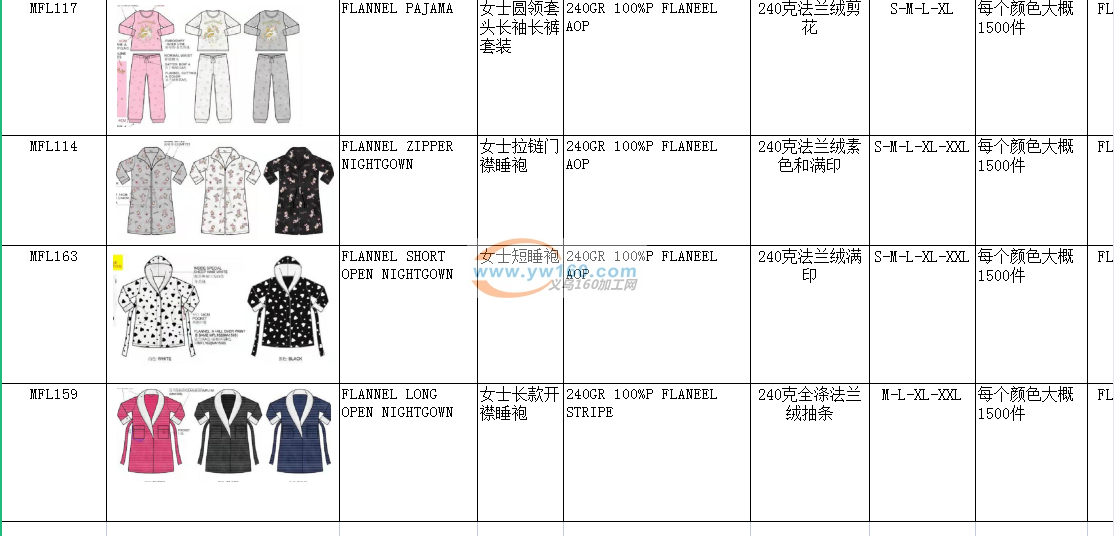 寻义乌能做这几款睡衣的工厂,数量
