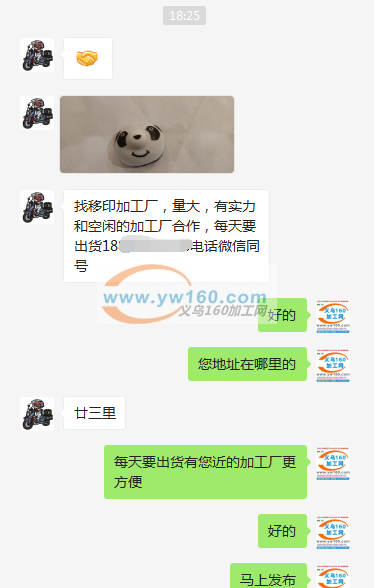 义乌廿三里找移印加工厂,量大,有实力和空闲的加工厂合作,每天要出货,电话微信同号
