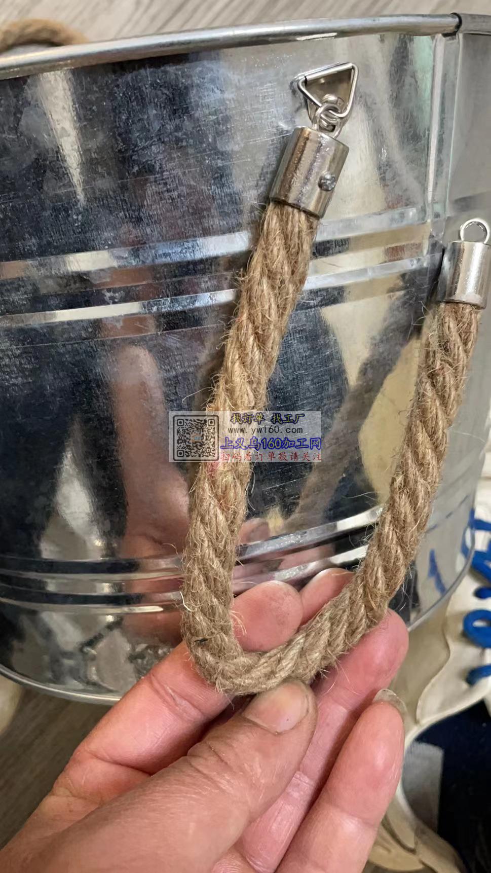找寻做如图麻绳拉手的成品工厂,数量2万,要包工包料,铁筒不要,有能做的成品工厂联系