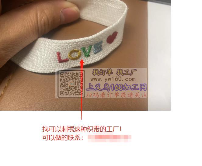 找义乌可以刺绣这种织带的工厂,做手链用,可以做的联系
