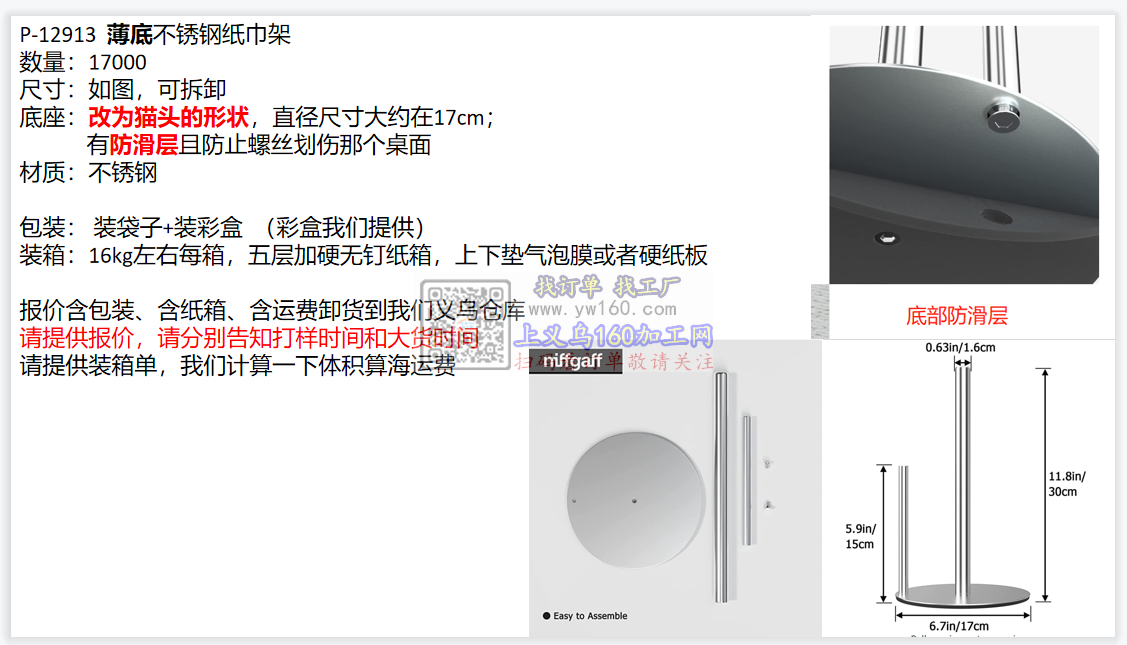 寻做这款不锈钢纸巾架工厂 如图,有能做的