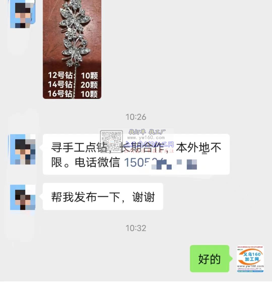 寻手工点钻,长期合作,本外地不限。义乌本地或者外地的点钻加工厂都可以,有意者请联系