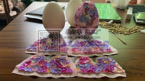 手工外发,布片粘塑料球上面。球总数量3000个