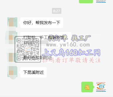 打胶枪,手工包装外发,最好在东阳下昆溪附近的加工厂,有空的请联系