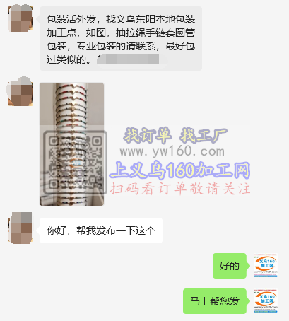 找义乌东阳本地包装加工点,如图,抽拉绳手链套圆管包装,专业包装的请联系,最好包过类似的加工厂联系。