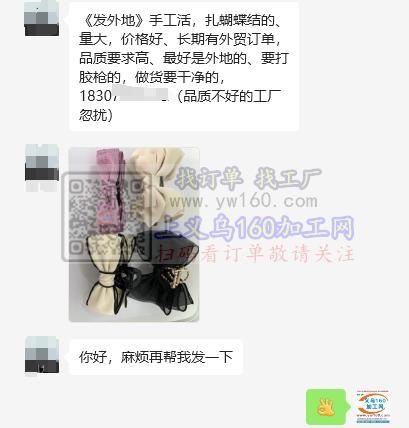 《发外地》手工活扎蝴蝶结外发、量大,价格好、长期有外贸订单,品质要求高、最好是外地的、要打胶枪的,做货要干净的,