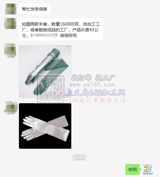 【老板在线等】寻做这两款手套加工厂,数量160000双,找加工工厂,或者能做成品的工厂,产品长度43公分,有能做的请与我联系 微信同号