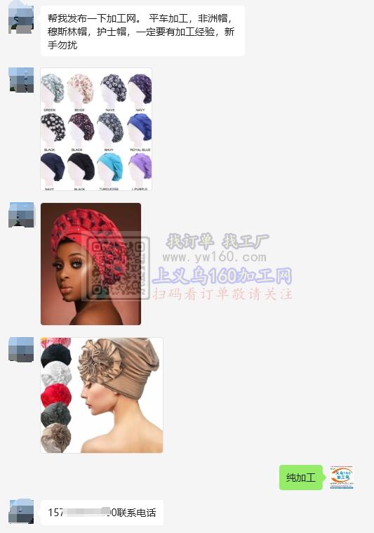 平车外发加工,非洲帽,穆斯林帽,护士帽,一定要有加工经验,新手勿扰