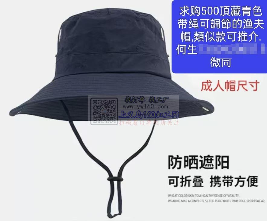找做渔夫帽厂家,求购如图500頂藏青色带绳可調節的渔夫帽,