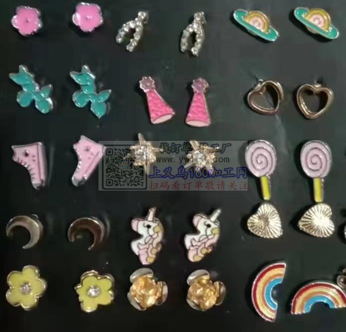 义乌山木饰品机器滴油加工厂,承接项链、手链、胸针、耳钉、耳环、钥匙扣等滴油配件,前期