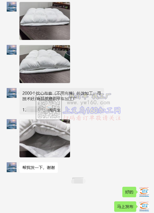 【老板在线寻找】2000个枕心布套外发加工