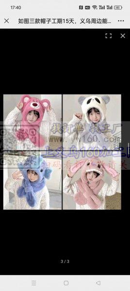 本厂在江西上饶有10余年加工经验,主营帽子三件套,袖套,口罩,面罩,卫衣,包边,平车拷边有30个工人,出货快,保质保量,有外发的联系我