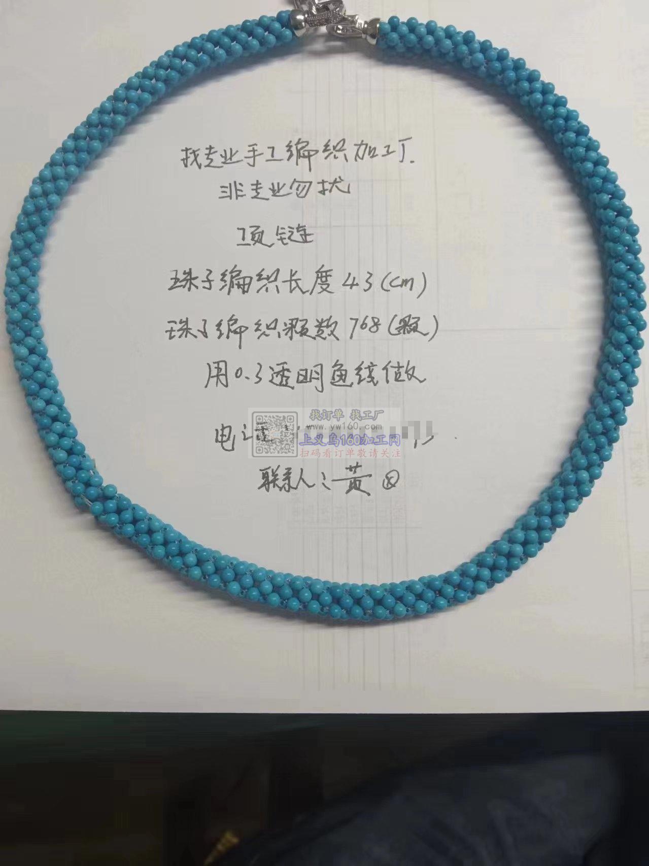 手工编织活外发【发外地】找专业手工编织加工厂, 纯加工 ,专业做的加工厂联系, 非专业勿扰,项链,珠子编织长度43 (cm),珠子编织颗数768颗,用0.3透明鱼线做,