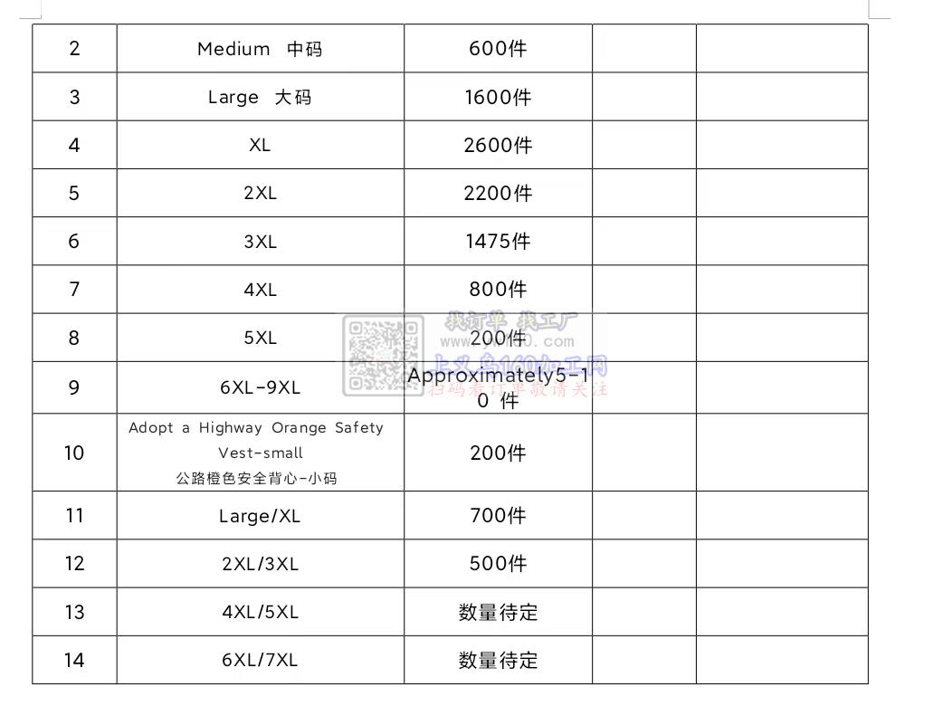 找服装加工厂, 做交通安全背心, 数量1