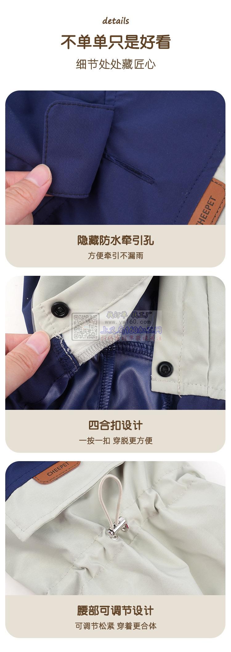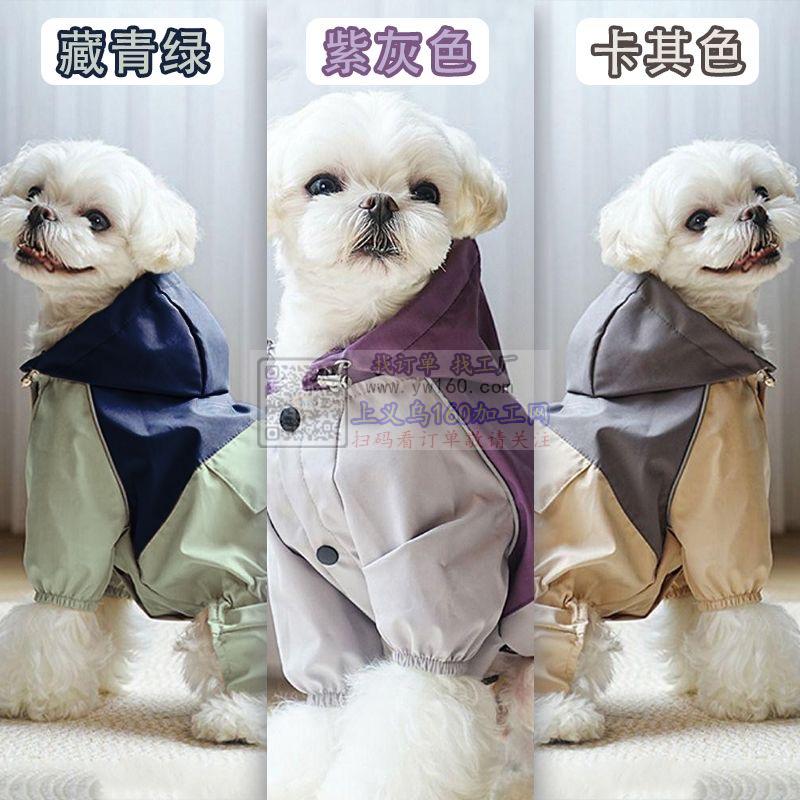 宠物狗撞色拼接四腿雨衣,