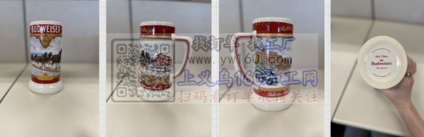找白瓷啤酒杯, 有两种版本;一种底部有金色印章,另一种则没有。
