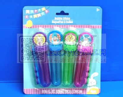 一卡4色 (復活節泡泡水試管 4PK) 产品细节描述:吸卡250克灰底白对裱,正面四色印刷,背面1色印刷,尺寸:19.9*17.1cm。4瓶泡泡水:每瓶28ml泡泡水。每只瓶子:PET瓶身7.5克。PP外盖3.5克。PE吹泡芯:1.5克,外盖上一张彩色不干胶圆贴,不干胶直径:1.5cm。 有的与我联系