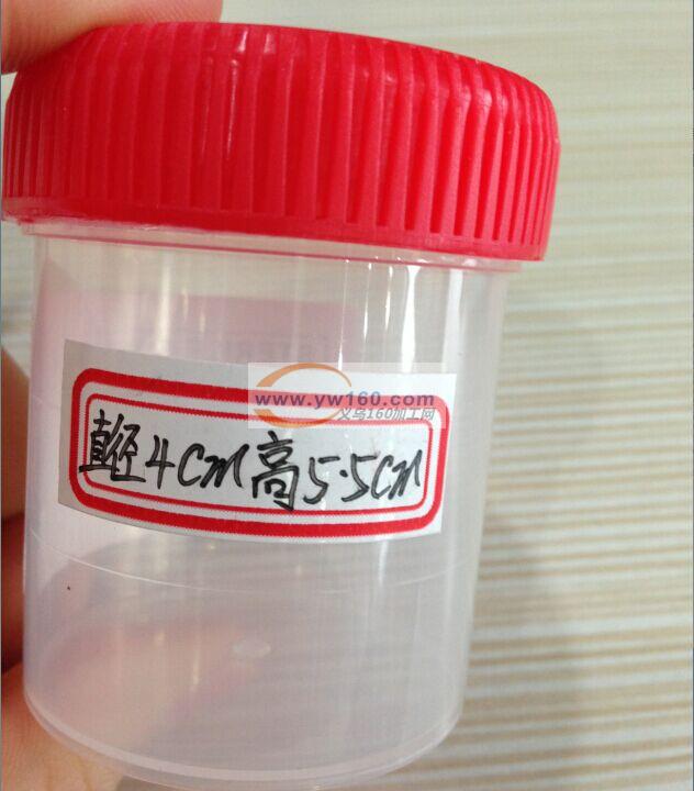 尿杯 直径3.5cm*高6.5cm(此为50ml),PVC透明材质需50ml及100ml(容积变大是高不变,直径变大);PVC不透明材质只需50ml
