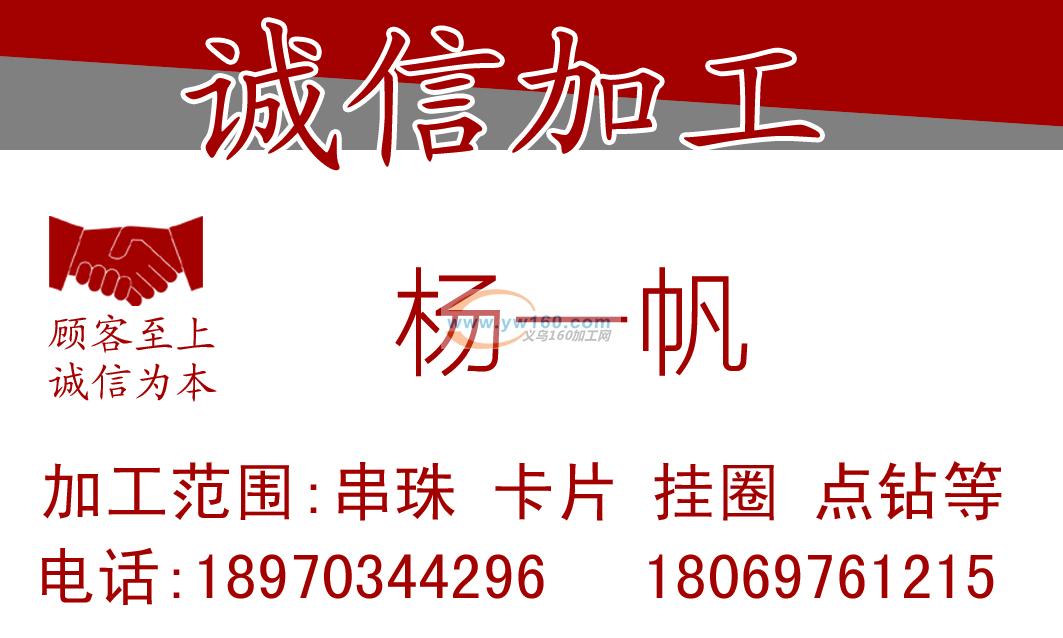 你好,我们是江西上饶,有自己的团队30-50人,我们认真负责对待每一件加工活,可做饰品加工,串珠,卡片,挂圈,点钻,九字针等等,希望可以与诚信的厂家合作。我的电话是18970344296,现在是人多活不够,需要大量找活。希望可以与诚信的老板合作,我们一定会合作愉快的。