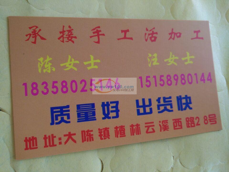 本人长期接各种手工活,有充足的人力资源欢迎来料加工,电话18657140755,金华东阳