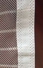 网纱门帘外发加工,有两道工序(如下图) ,需要超声波花边机锁边,以及打孔上扣两道工序,包边条为无纺布。两道工序可以做一道的工厂都可以联系。