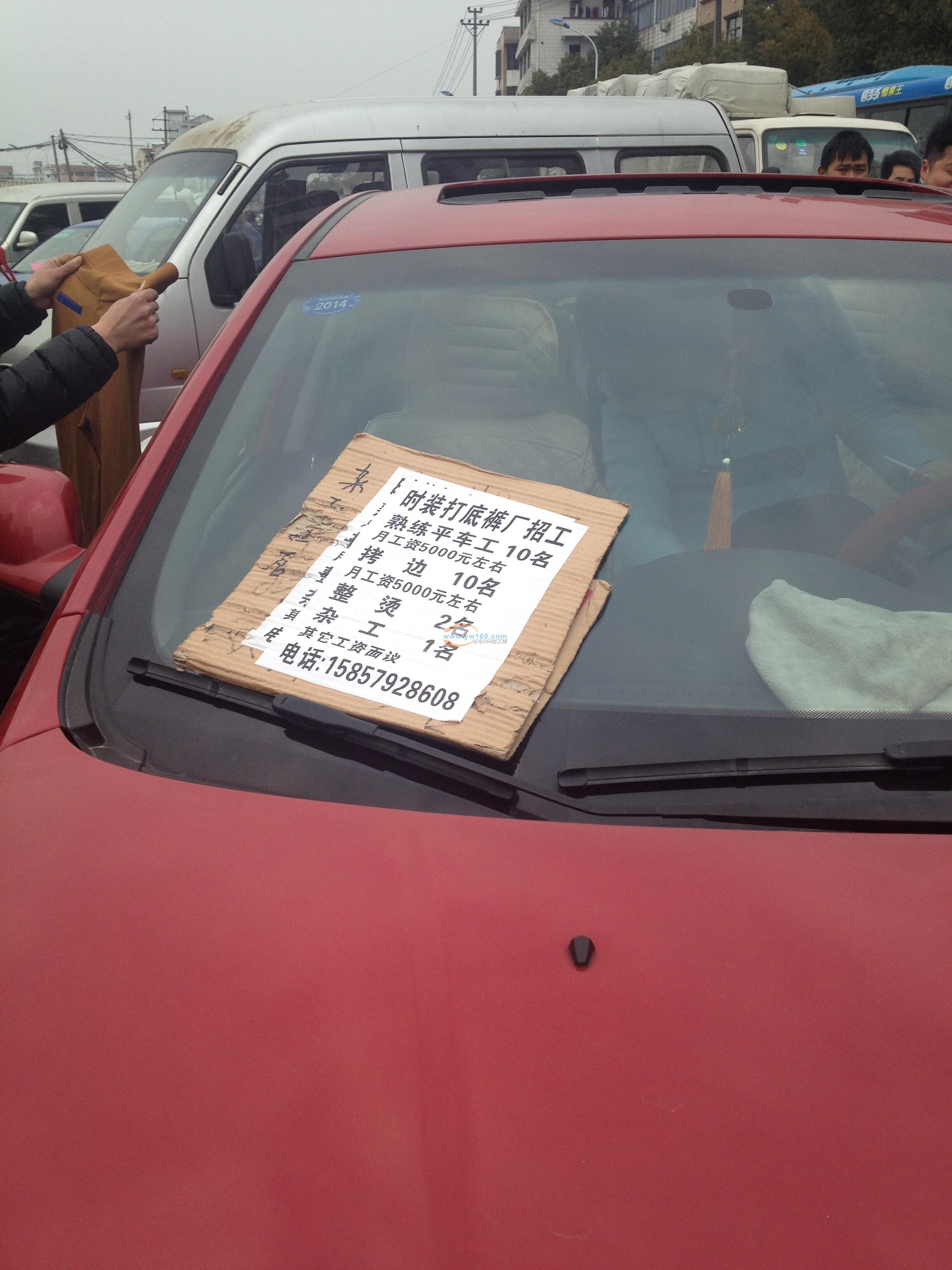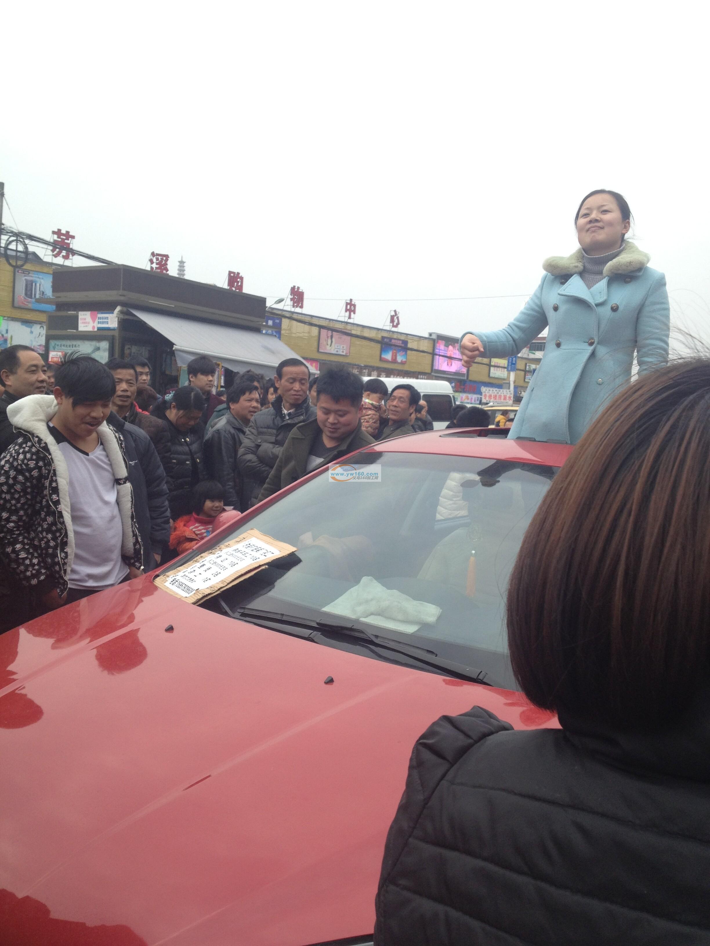 今天在义乌的苏溪镇胡宅菜市场门口,这里聚集了很多企业招工人员,还有更多的找工作的务工者,这时候路边的一辆轿车围满了人,原因是车的天窗一位女性在放着的士高在跳舞呢,仔细一看才知道,车前面放了一个招工牌,原来是为了吸引人围观呢,过了不到5分钟,真的招到了一个员工,把行李放到了后备箱