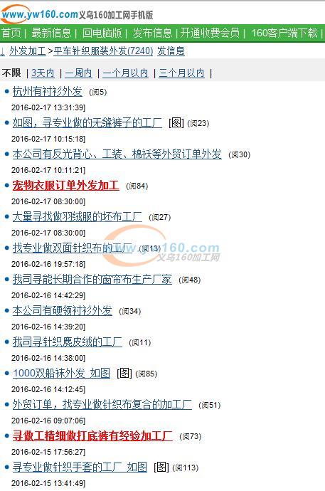 找针织服装平车活-上义乌160加工网